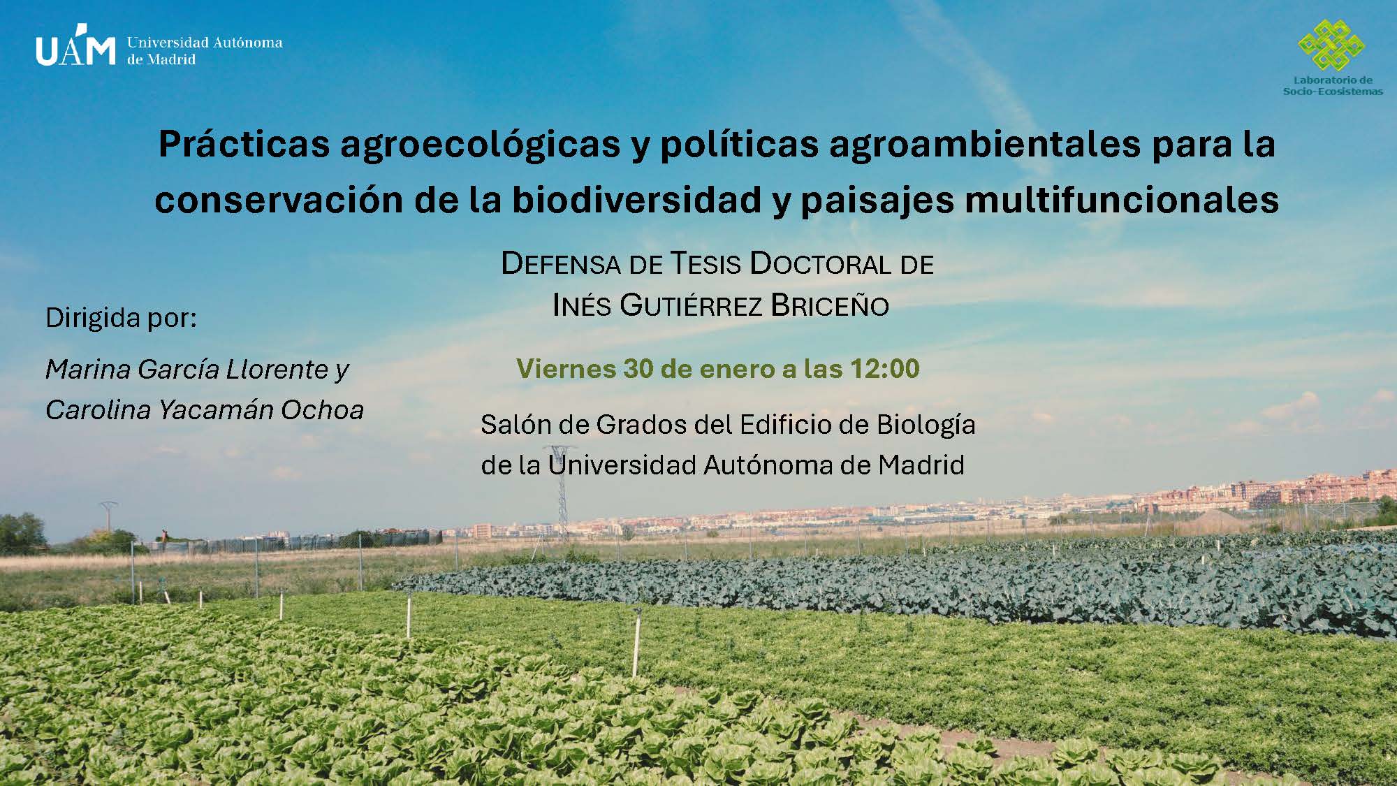 Defensa de la Tesis Doctoral de Inés Gutiérrez Briceño titulada "Prácticas agroecológicas y políticas agroambientales para la conservación de la biodiversidad y paisajes multifuncionales"