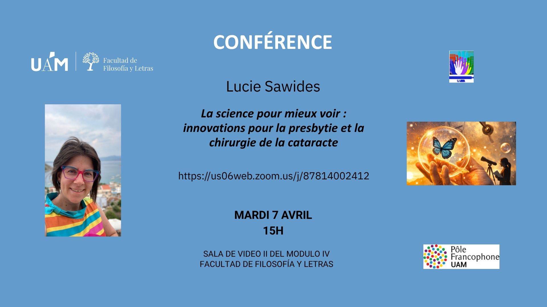 Pourquoi avons-nous soudain besoin de lunettes pour lire en vieillissant ? et pourquoi certaines personnes ont-elles l’impression que le monde devient progressivement plus flou et moins lumineux ?La vision repose sur un système optique d’une grande sophistication : l’œil humain. Avec l’âge, ce système évolue et entraîne deux troubles visuels: la presbytie, liée à la perte de la capacité d’accomodation (la mise au point de près), et la cataracte, qui correspond à l’opacification du cristallin. La chirurgie de la cataracte, l’une des interventions les plus pratiquées au monde, permet de remplacer cette lentille naturelle par une lentille intraoculaire artificielle capable non seulement de restaurer la vision, mais aussi de corriger la presbytie. Mais toutes les lentilles intraoculaires ne se valent pas. Il en existe aujourd’hui de nombreux types (monofocales, multifocales ou à profondeur de champ étendue) chacun offrant des compromis différents entre vision de loin, intermédiaire et de près. Choisir la lentille la plus adaptée à chaque patient est donc devenu un véritable défi scientifique et clinique.Cette conférence vous fera découvrir le fonctionnement de l’oeil, les methodes permettant de mesurer ses proprietés, d’évaluer les performances des lentilles intraoculaires et d’étudier certains effets visuels qu’elles peuvent produire, comme les halos autour des sources lumineuses. Elle présentera également les recherches menées au sein du group d’Optique Visuelle et Biophotonique de l’Institut d’Optique du CSIC, où des modèles d’œil personnalisés et des simulateurs visuels avancés permettent de prédire et de simuler la vision après chirurgie afin d’aider les patients à choisir la correction la plus adaptée. Une approche innovante qui ouvre la voie à une correction visuelle plus précise et personnalisée.