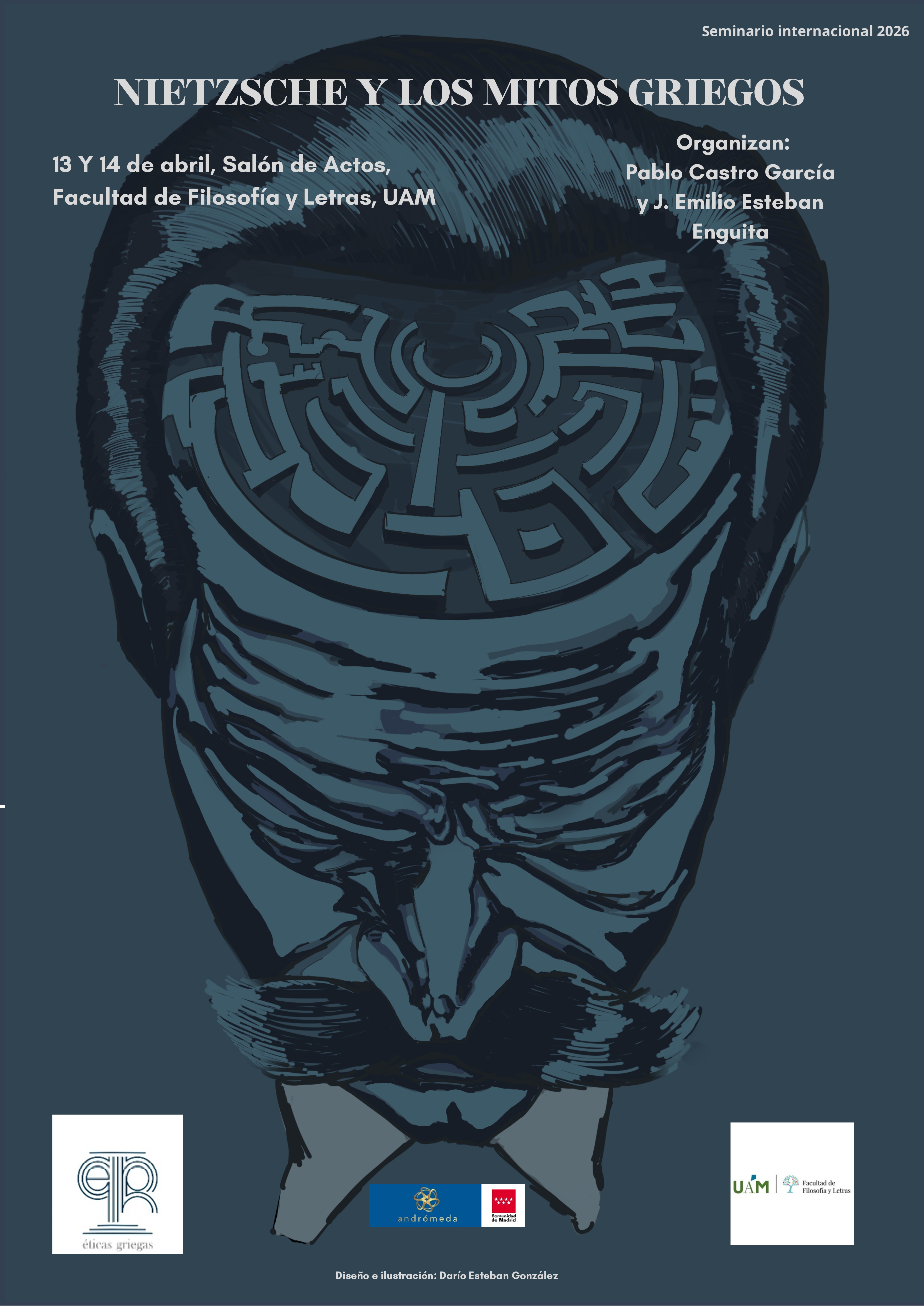 Seminario Internacional sobre la importancia de los mitos griegos en la obra del filósofo alemán Friedrich Nietzsche. Inscrito en el marco de las actividades de la Facultad de Filosofía y Letras (UAM) y del "Proyecto Andrómeda" (Proyecto de Investigación sobre las representaciones contemporáneas de los mitos antiguos, medievales y modernos), en el que participa el Grupo de Investigación "ÉTICAS GRIEGAS, Influencias de las éticas griegas en la filosofía contemporánea” (UAM). Organizan dos profesores del Departamento de Filosofía: Pablo Castro García y J. Emilio Esteban Enguita.