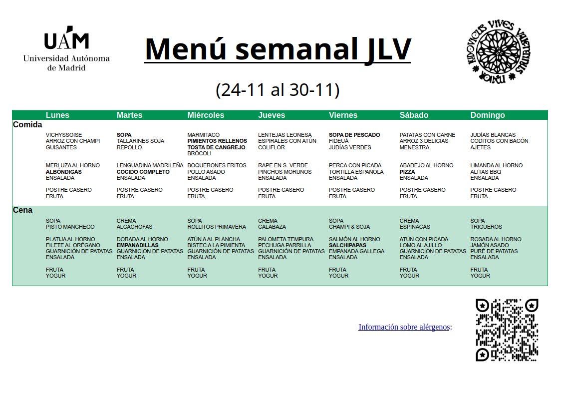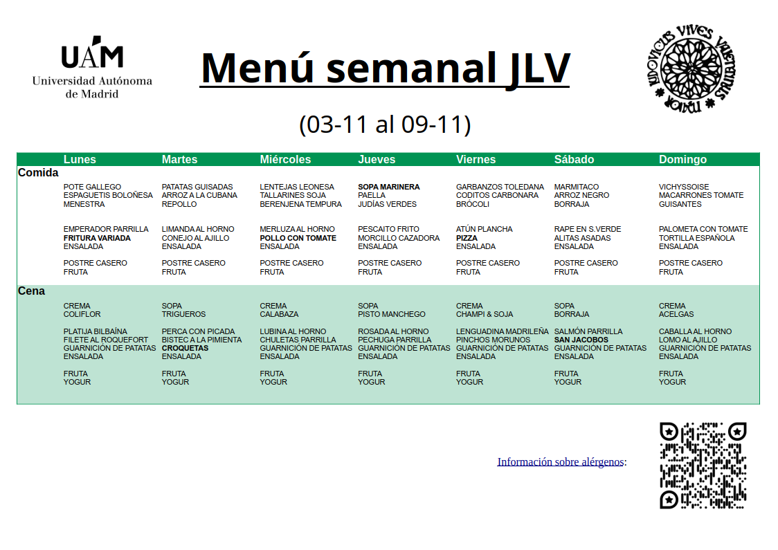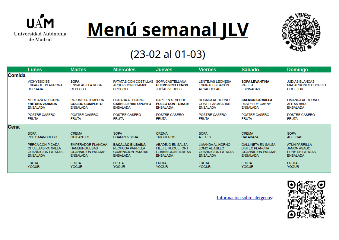 Menú semanal JLV