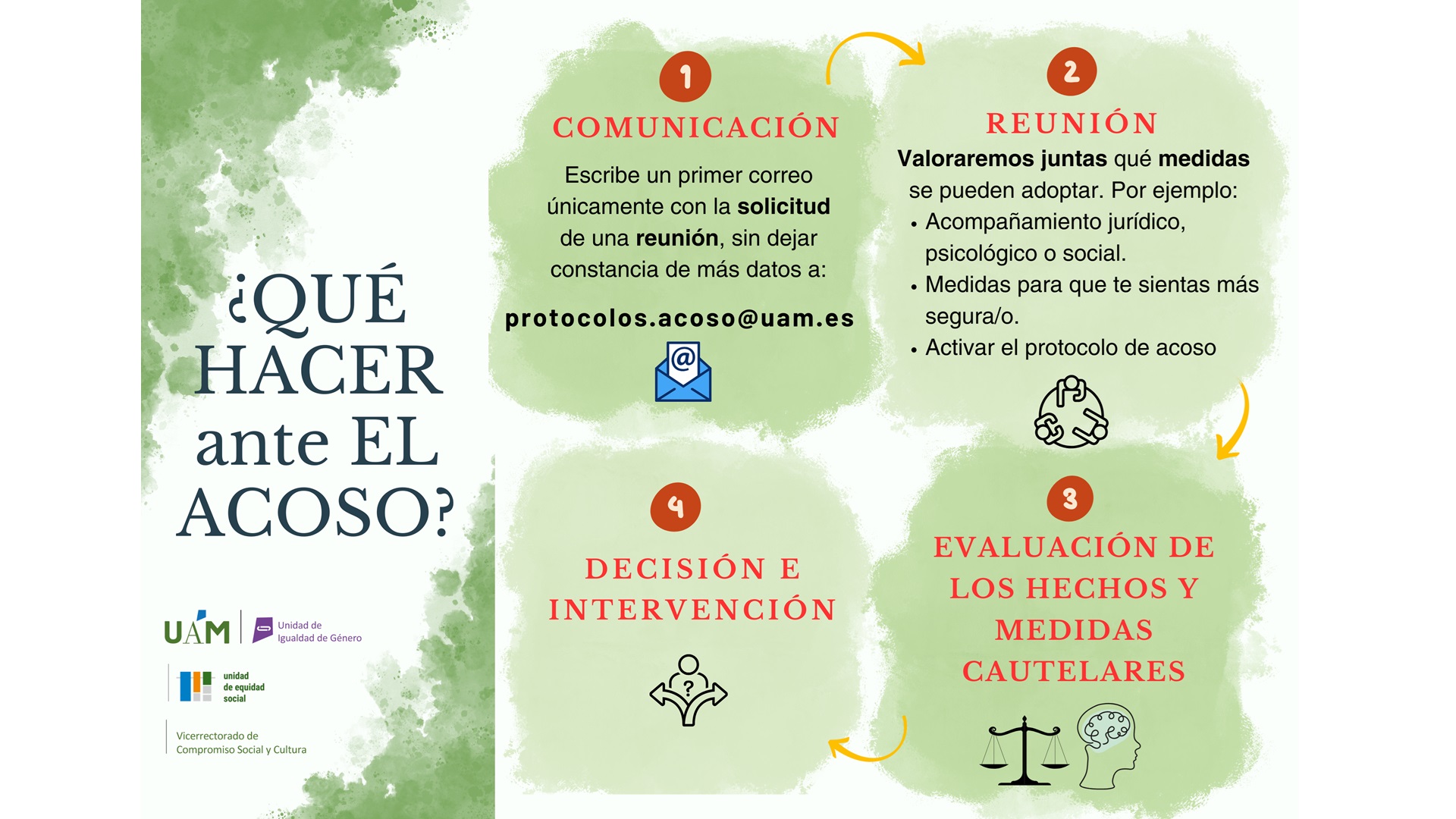 i. Escribe a protocolos.acoso@uam.es, sin dar detalles, y ven a contarnos qué está pasando.