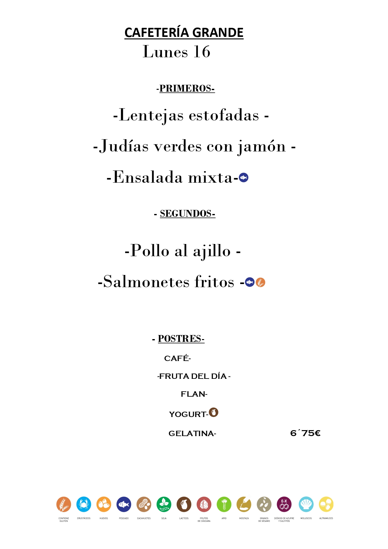Facultad de Ciencias Económicas y Empresariales (Cafetería Grande) Semana del 16 al 20 de febrero