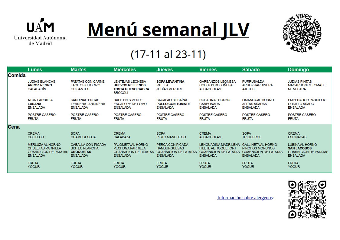 Menú semanal JLV