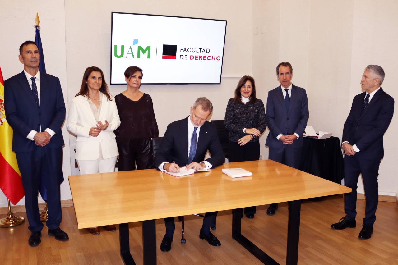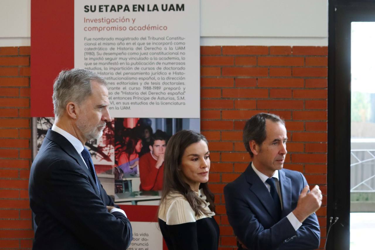Posteriormente, los reyes han firmado el primer ejemplar del libro conmemorativo dedicado al profesor Tomás y Valiente, que se ha entregado a la facultad como legado. Sus Majestades han visitado también la exposición In Memoriam Tomás y Valiente. 1996-2026, dedicada al recuerdo de quien fuera catedrático de Historia del Derecho de la UAM entre 1980 y 1996. La muestra tiene una primera parte dedicada a la trayectoria personal, académica y pública de Tomás y Valiente; y una segunda en la que se recogen las reacciones tras su asesinato, los homenajes que se le tributaron y la trascendencia que ha tenido su figura.