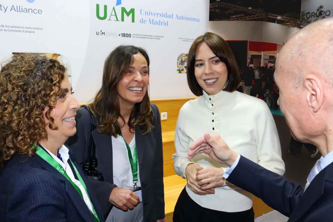 Durante la primera jornada, el stand de la UAM recibió la vista de la ministra de Ciencia, Innovación y Universidades, Diana Morant, quien conversó con la vicerrectora de Estudiantes Nuria Fernández; la delegada de la rectora para Asuntos de Estudiantes, Eva Medina y la vicegerente de Estudios y Extensión Universitaria, Cristina Soto. El viernes está prevista la visita de la rectora Amaya Mendikoetxea.
