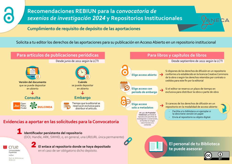 • También puede servir de ayuda el recurso en línea Open policy finder (antes Sherpa/Romeo) a nivel internacional y a nivel nacional DULCINEA.